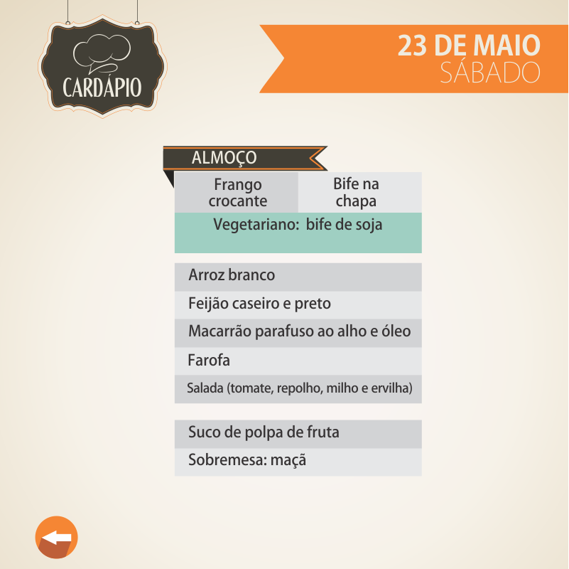 Cardápio de 18 a 23 de maio mantém nova configuração