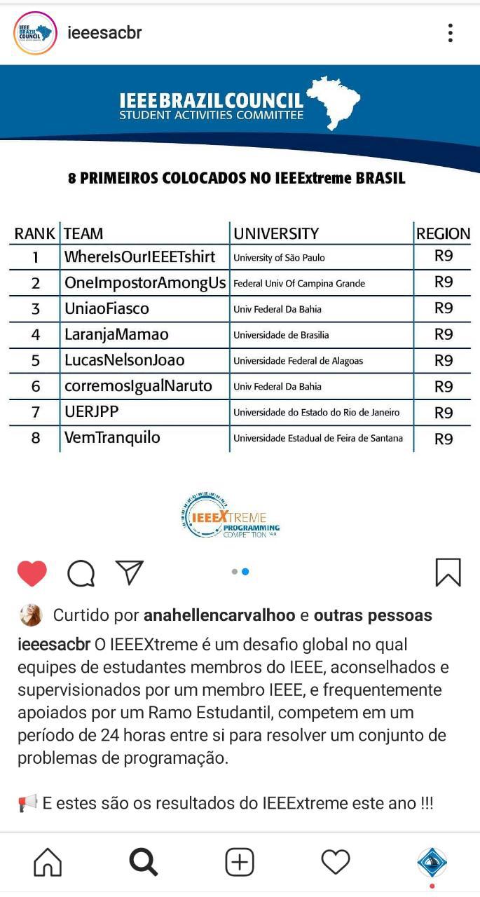 Podem participar do IEEExtreme estudantes membros do IEEE. Este ano, a competição contou com 4.132 times de 73 países. No resultado nacional, as primeiras colocações ficaram, respectivamente, com as universidades de São Paulo, Federal de Campina Grande, Federal da Bahia e de Brasília. E a Ufal em 5º lugar.