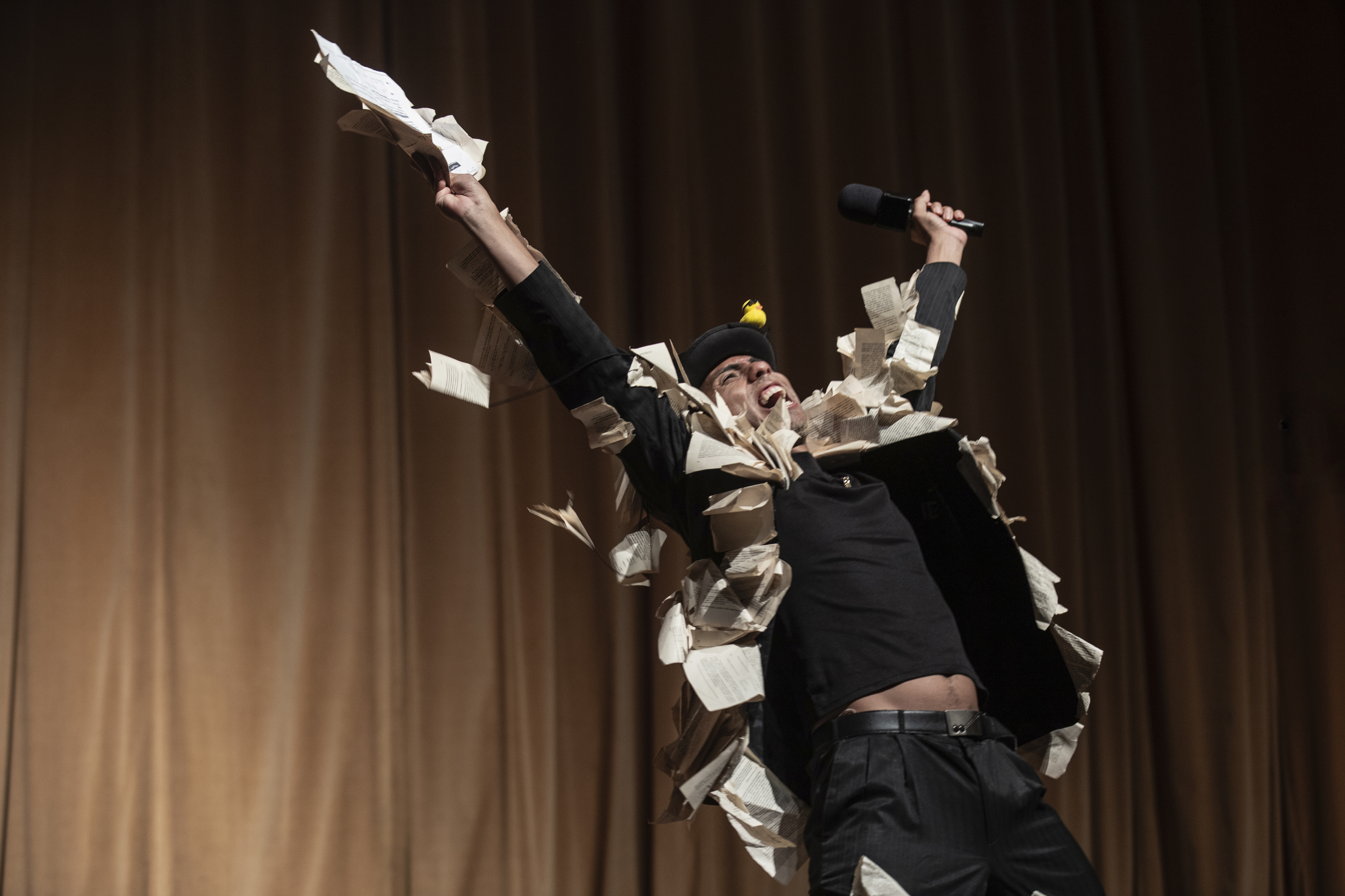 Antes de cada performance, dois apresentadores artistas, Laís do Céu e Pedro Leon, se vestiram de livros, com folhas rasgadas envoltos em uma manta preta. Eles animaram os estudantes e fizeram com que eles entrassem na energia dos espetáculos.