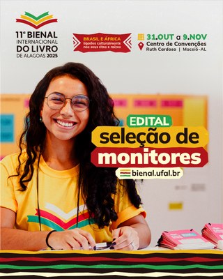 Chegou a hora para estudantes que desejam viver a experiência de atuar como monitores voluntários no maior evento literário e cultural do estado: a 11ª Bienal Internacional do Livro de Alagoas. O edital do processo seletivo está aberto de 18 a 28 de agosto, e as inscrições são realizadas por meio de formulário de inscrição on-line para qualquer curso e formulário de inscrição on-line para o curso de Libras.