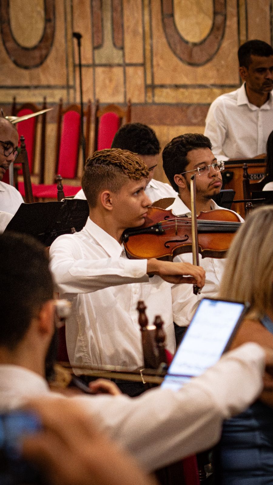 “Meu interesse pela música começou quando eu tinha 8 anos, ao assistir a uma orquestra pela primeira vez. Fiquei especialmente encantado com o violino. Lembro que dizia à minha mãe que queria muito ter um instrumento. Até que um dia ela me presenteou com um violino. Comecei a ter aulas na Escola de Música da Assembleia de Deus. Porém, tive que interromper os estudos após poucas aulas. Só depois, aos 12 anos, foi o momento em que decidi aprender violino de fato”, contou o estudante.