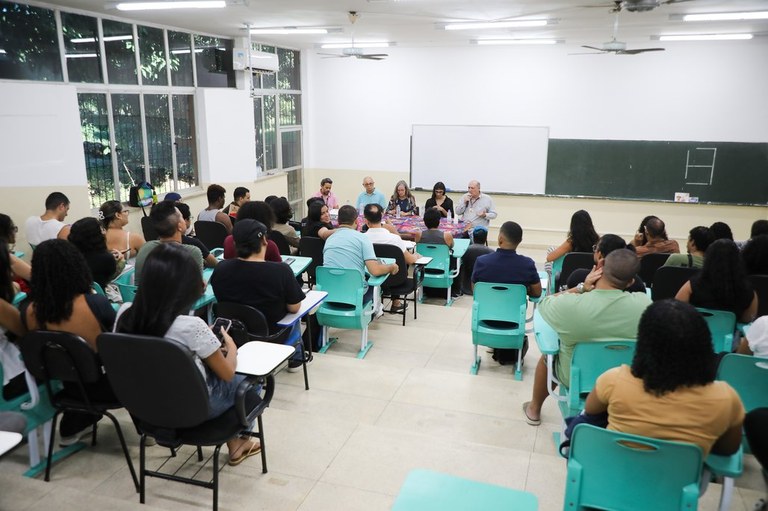 Além das boas-vindas aos recém-chegados, a programação contou com a presença da pós-doutoranda no Programa de Pós-Graduação em Direito da Universidade de Brasília (UnB), Michele Pires, que foi a primeira travesti historiadora doutora da Universidade Federal do Amazonas (UFAM) e ministrou a aula inaugural com o tema “Combater CISheteronorma, TRANSformar a história”.