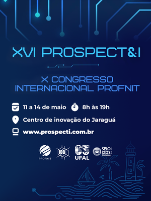 As inscrições e submissões de trabalhos para o 16º Prospect & I e 10º Congresso Internacional do Programa de Pós-Graduação em Propriedade Intelectual e Transferência de Tecnologia para Inovação (Profnit) da Universidade Federal de Alagoas (Ufal) estão abertas até o próximo domingo, 15 de março. Um dos mais importantes eventos nacionais e internacionais dedicados à Prospecção Tecnológica, Propriedade Intelectual, Transferência de Tecnologia e Inovação, o Prospect & I é uma iniciativa da rede nacional do Profnit.