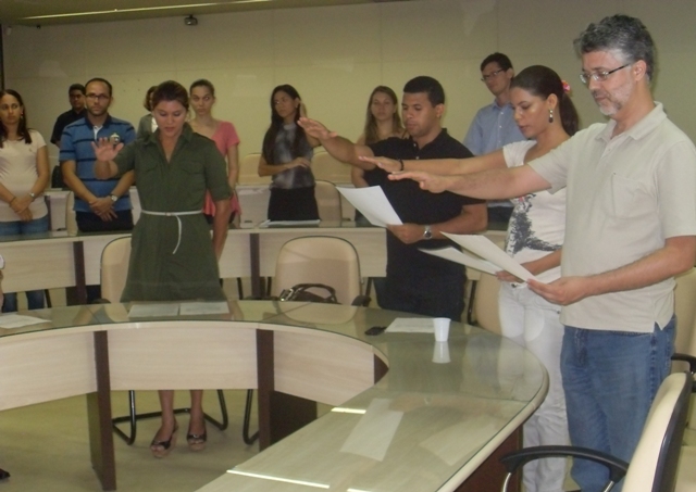 Quatro docentes efetivos, onze professores substitutos e três técnicos tomaram posse na quarta-feira, 4, na sala dos Conselhos Superiores Professor Eduardo Almeida da Silva, no prédio da Reitoria.