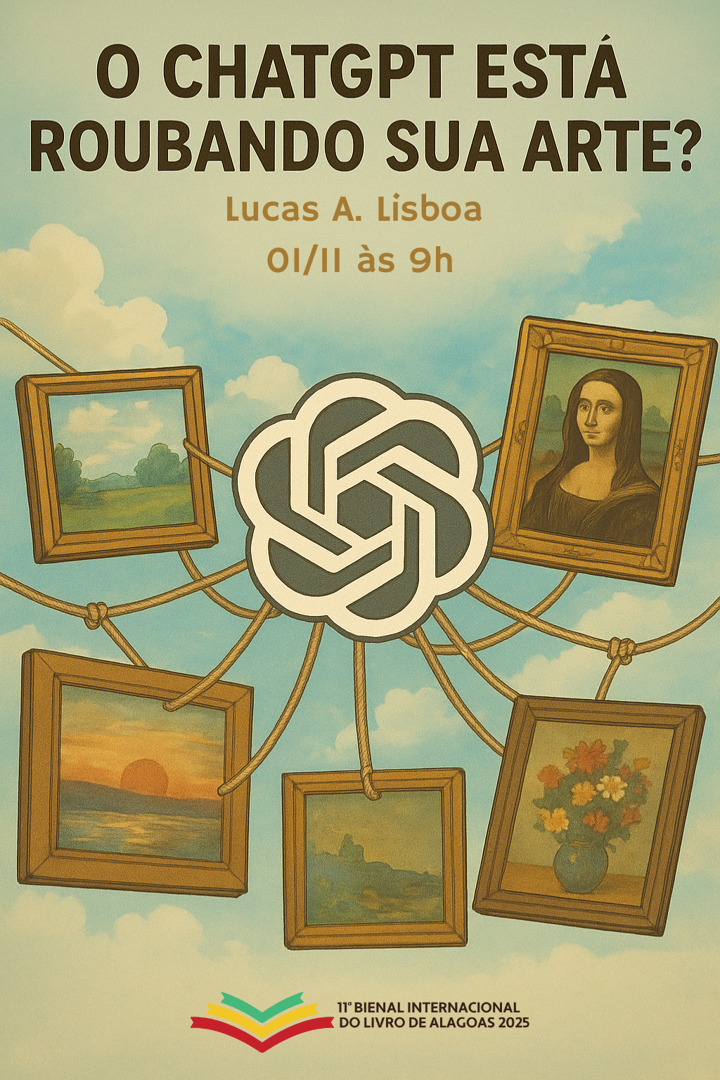 A palestra, intitulada “O ChatGPT está roubando sua arte?”, está programada para o dia 1º de novembro (sábado), às 9h, na Sala Tamarindo, e será dividida em duas partes. Na primeira, Lucas apresenta conceitos introdutórios sobre o funcionamento e o treinamento de modelos de IA, com o objetivo de desmistificar o tema. Já na segunda, o foco será nas questões éticas e sociais que envolvem o uso dessas tecnologias, como viés algorítmico, quebra de privacidade e direitos autorais.