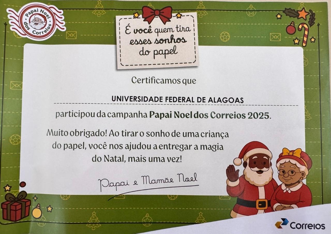 Além da entrega dos presentes, a campanha evidencia o compromisso coletivo com ações de responsabilidade social e com a promoção de uma sociedade mais justa. "Ao participar do Papai Noel dos Correios, a Ufal reafirma seu papel social e fortalece iniciativas que transformam a solidariedade em ação. Já está virando tradição", destaca Janaina Alves.