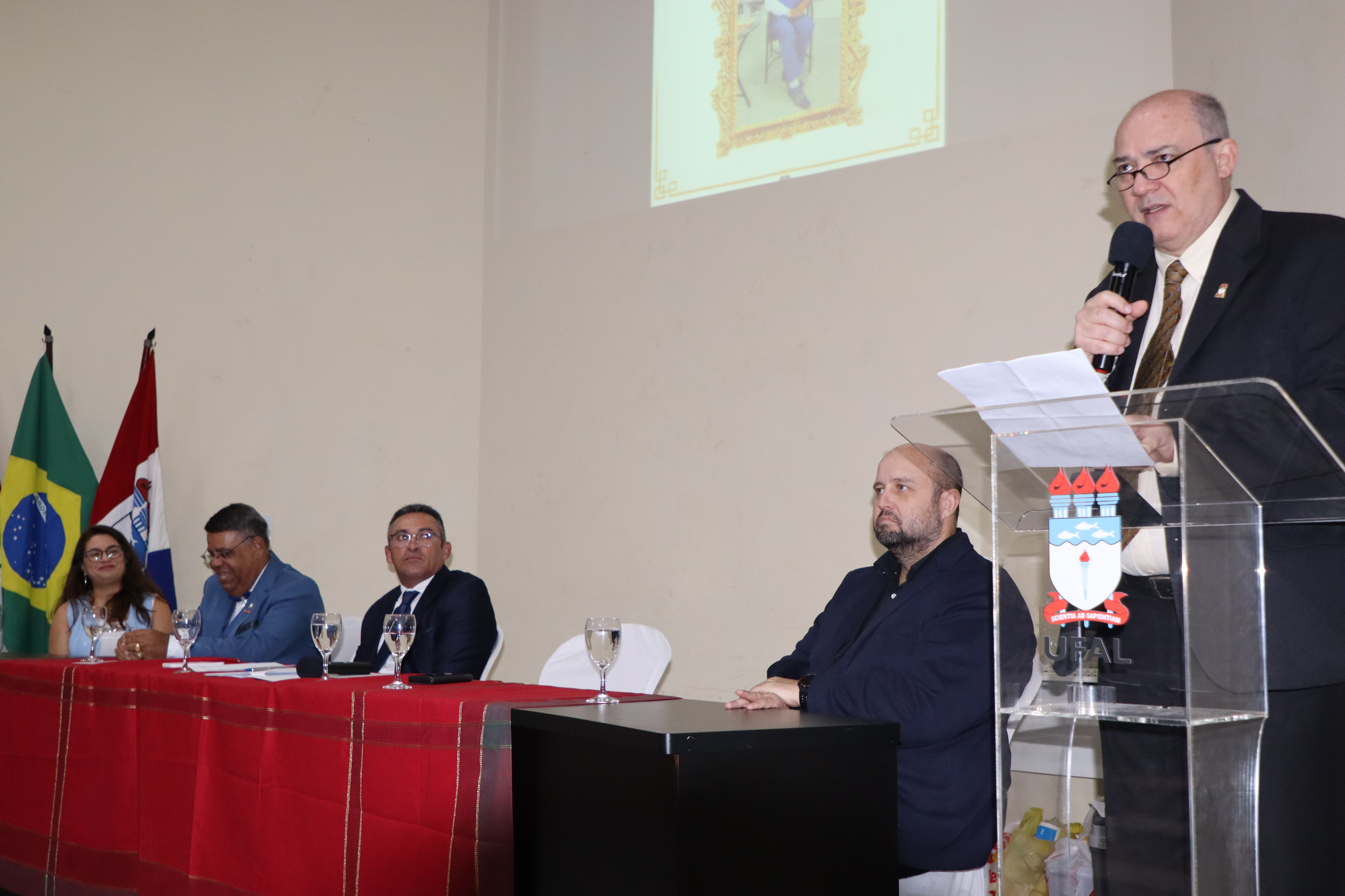 Além do vereador Luciano Marinho, fizeram parte da mesa o reitor Josealdo Tonholo, a coordenadora do curso de Pedagogia, Mônica Sales, a diretora do Cedu, Mariana Raggi, e o coronel da Polícia Militar, João Paulo Soriano, representando a corporação. Eraldo é professor de Estatística da Academia de Polícia da PM de Alagoas, onde tem há muitos anos uma ativa trajetória docente.