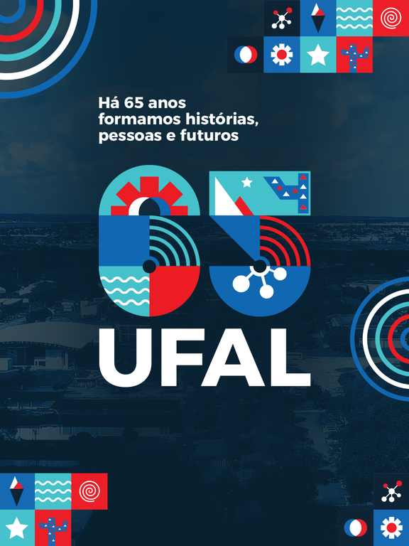 “Ao desenvolver a marca comemorativa da Ufal, a minha intenção inicial foi ir de encontro do minimalismo e fazer do número 65 uma estrutura mais narrativa e simbólica. Então, a composição composta por ícones e grafismos simplificados representam alguns caminhos institucionais da Ufal. Os ícones foram desenvolvidos com um estilo mais simplificado e de fácil leitura, garantindo reconhecimento imediato, modularidade e versatilidade de aplicação”, esclareceu a servidora.