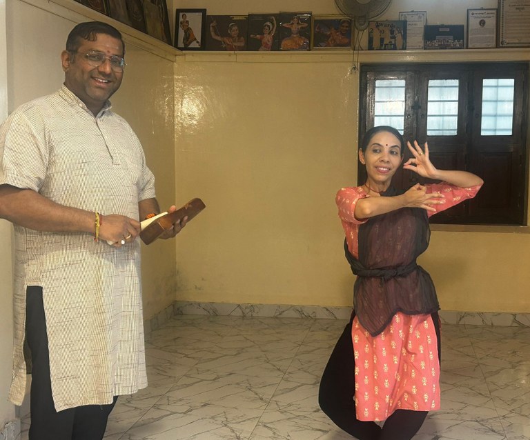 Ana Clara também visitou a escola de dança Bhanumati Nrityakala Mandiram, na cidade de Bangalore, onde pode apreciar uma aula avançada de Bharatanatyam da Guru Sheela Chandrasekhar. Segundo a docente, os ensinamentos da instituição é a mesma linha de trabalho que ela estudo no Brasil, de forma on-line e com alguns encontros presenciais na cidade de Belo Horizonte.
