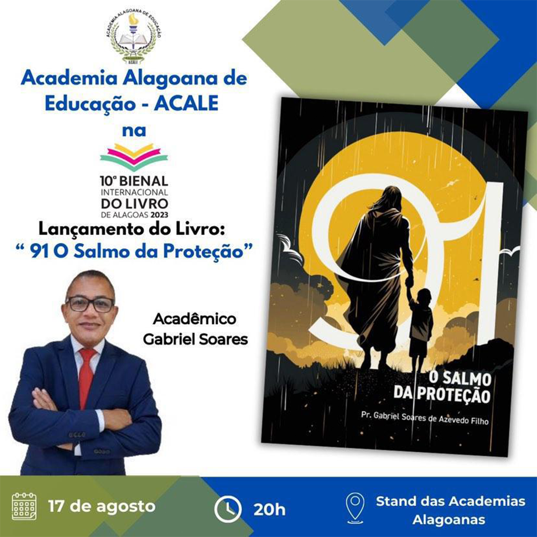 Ainda como parte da programação da Acale na Bienal, às 20h, no estande da Academia, será realizado o lançamento de mais um livro: “91: O Salmo da Proteção”, escrito por Gabriel Soares. Vale reforçar que toda a programação é aberta ao público, que não precisa pagar nada para entrar no Centro Cultural e de Exposições Ruth Cardoso e acompanhar toda a 10ª Bienal Internacional do Livro de Alagoas.