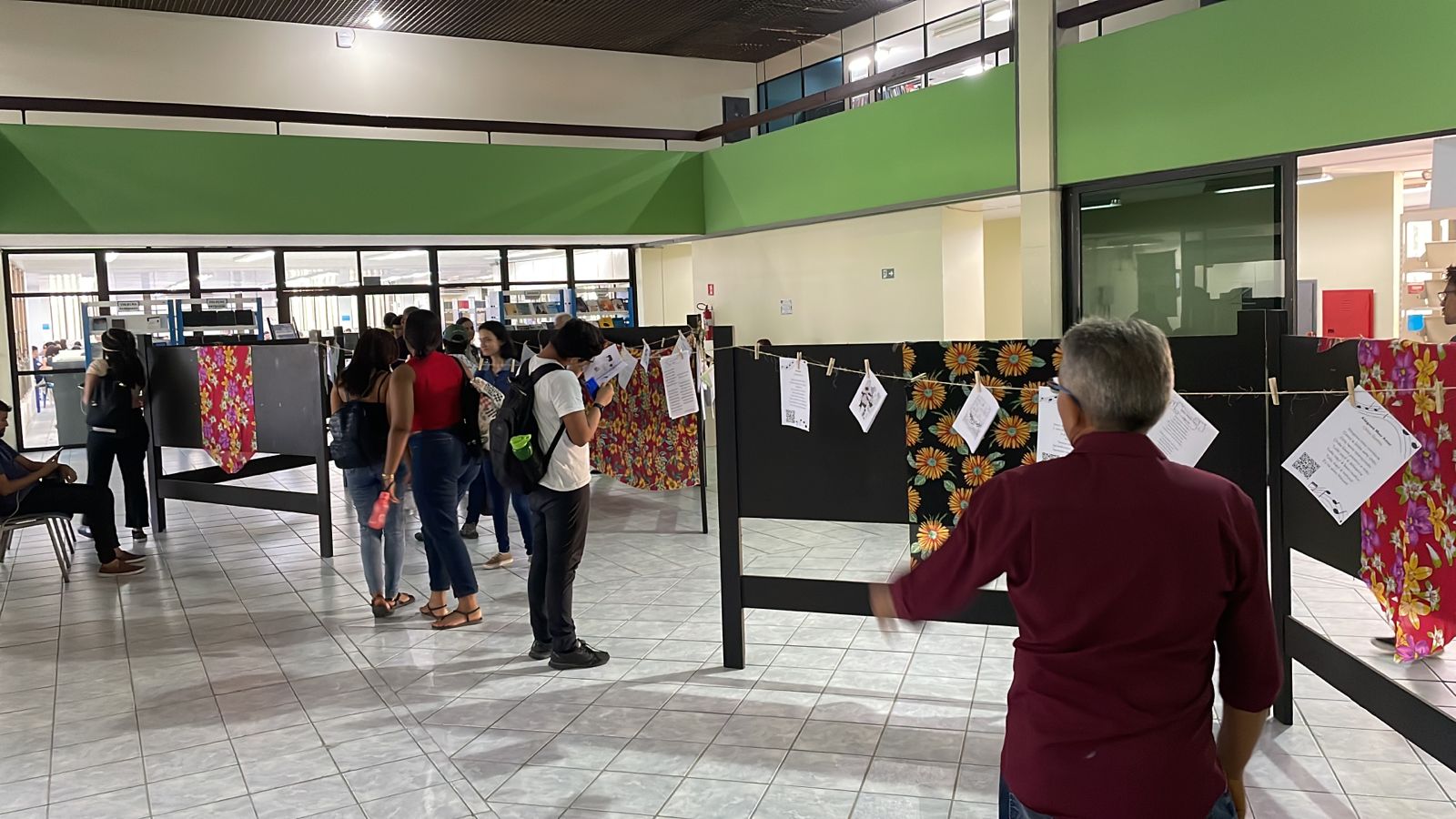 Segundo Willian, a ideia foi muito bem recepcionada pela direção da BC, pelos estudantes que participaram da organização e pelos próprios usuários da biblioteca. O espaço permitia a circulação entre as obras e também a intervenção: as obras expostas poderiam ser levadas pelos espectadores.