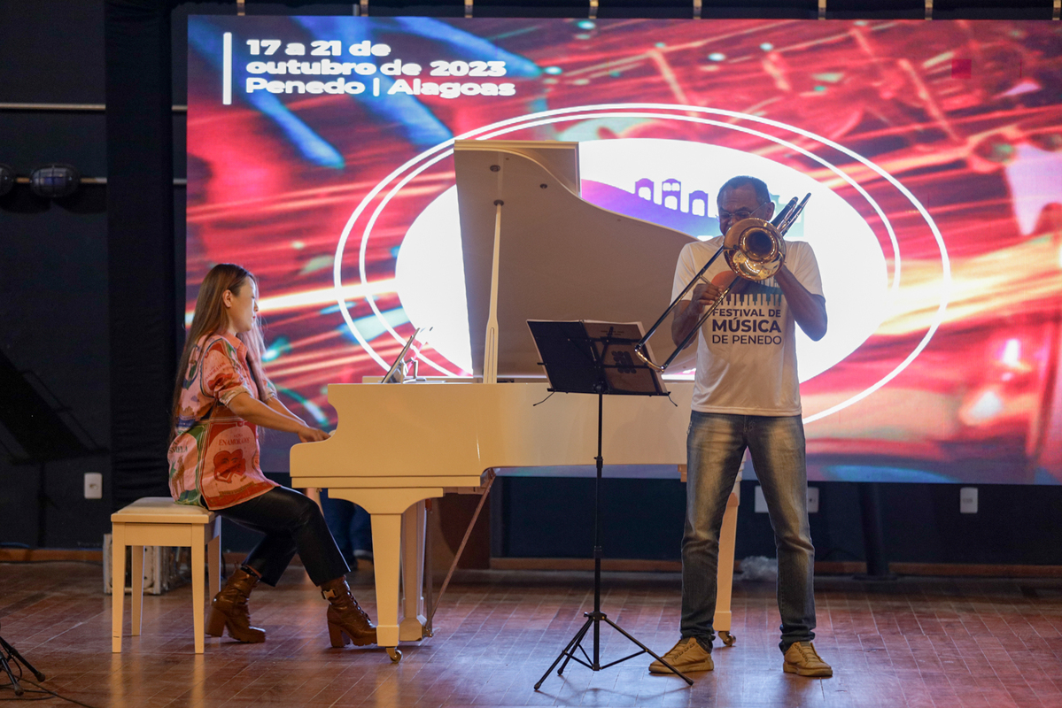 O grupo de Saxofones da Universidade Federal de Alagoas (Ufal) e o duo musical TPDuo, formado pelo trombonista Gilvando “Azeitona” e a pianista chinesa Nan Qi, professores da Universidade Federal do Rio Grande do Norte (UFRN), se apresentaram na quarta-feira (18), no palco do Centro de Convenções. São atrações que fazem parte da programação do Festival de Música de Penedo e pertencem ao amplo leque de produções artísticas das universidades.