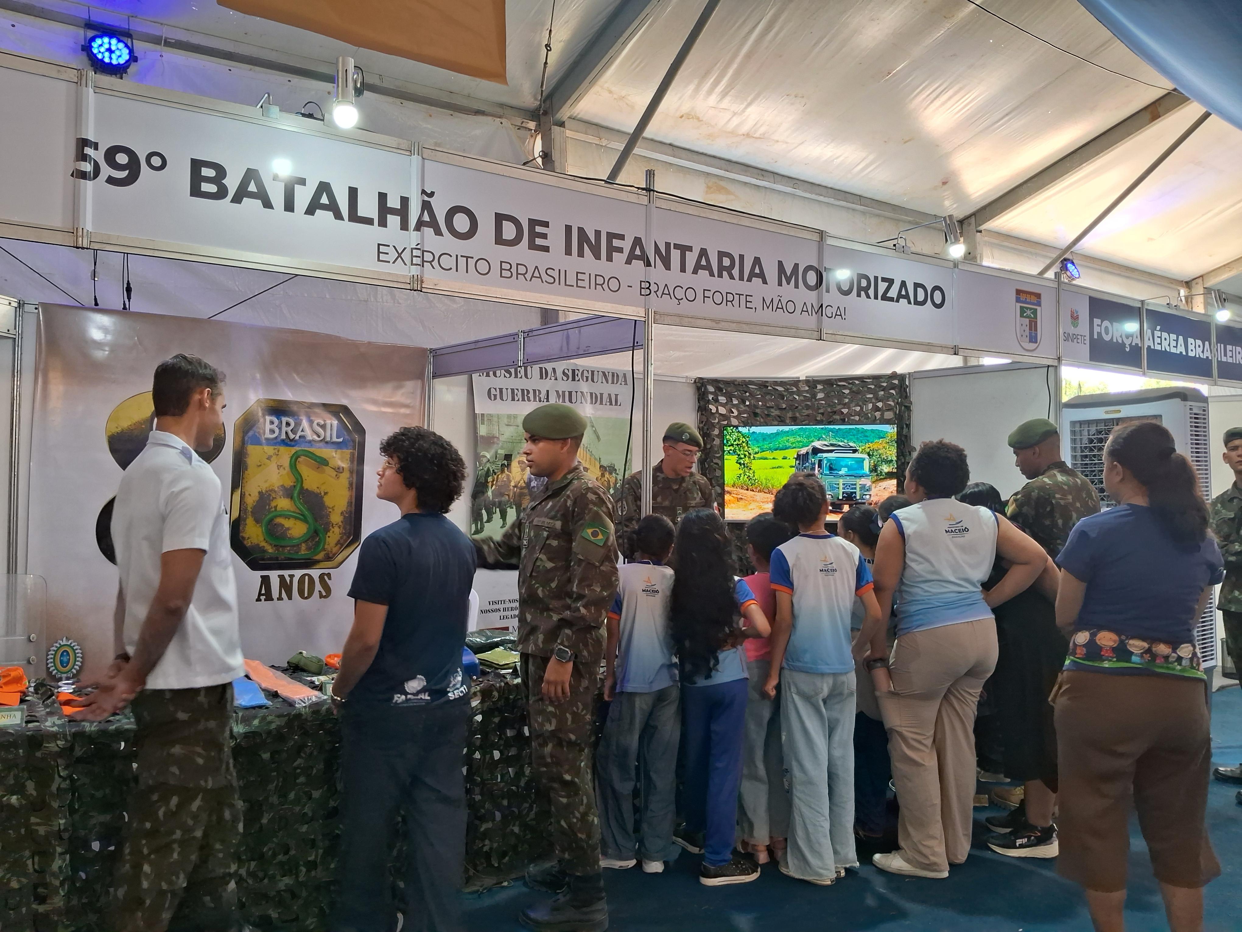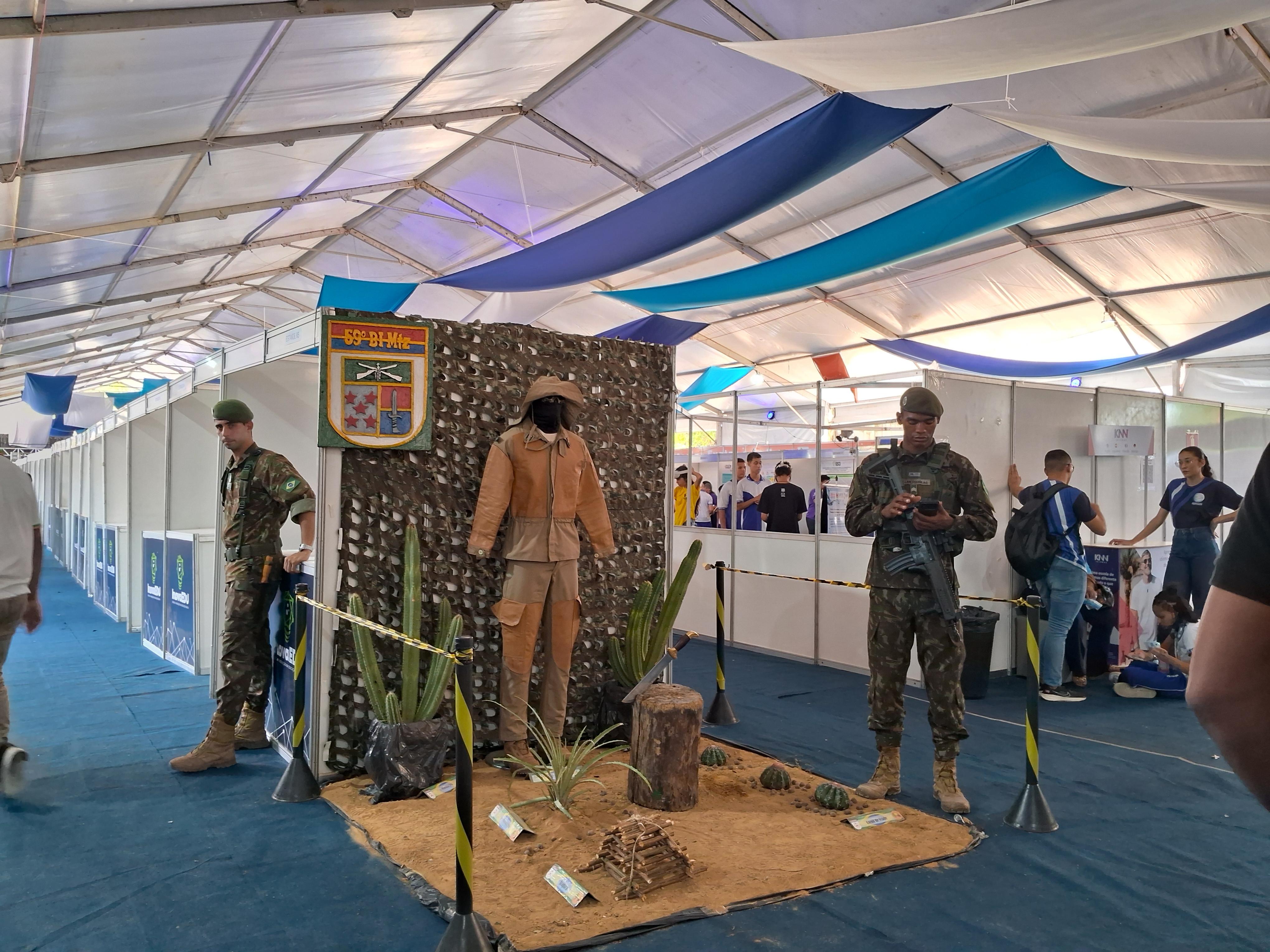 O Exército Brasileiro, representado pelo 59º Batalhão de Infantaria Motorizada, também marcou presença nesta segunda-feira (20). A parceria, iniciada ainda nas atividades pré-evento, tem aproximado a juventude das diversas áreas de atuação e formas de ingresso na carreira militar. O tenente-coronel Márcio Robério, comandante do batalhão, esteve no local e destacou a relevância dessa colaboração. “É uma grande satisfação estarmos aqui nesta semana. Tudo o que incentiva a pesquisa, o desenvolvimento e o interesse científico entre os jovens é de extrema importância para as forças armadas, especialmente para o Exército”, afirmou o tenente-coronel, que também destacou a expectativa positiva em receber estudantes de todo o estado.