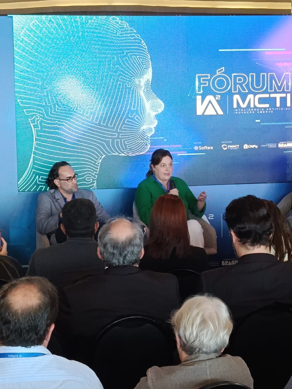 O Fórum de Inteligência Artificial trouxe palestras voltadas para contextos como a IA e a Acessibilidade, IA na Saúde e na Indústria, intercaladas por diálogos com os coordenadores de projetos no programa IA² MCTI. Na oportunidade, o professor Victor Carvalho, ao lado da professora Vanessa Weber, da Universidade Estadual do Mato Grosso do Sul (UEMS), tiveram espaço para apresentar suas visões, experiências e dificuldades vivenciadas no decorrer dos projetos, assim como suas perspectivas de desenvolvimentos futuros.