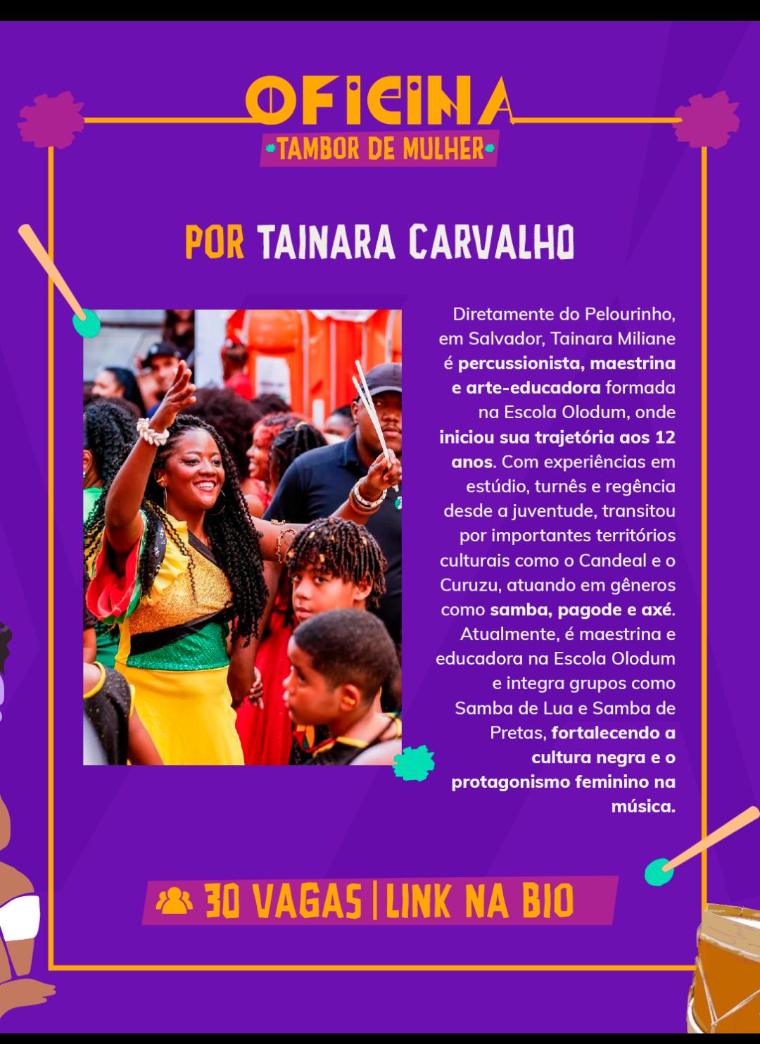 A programação inclui oficinas, vivências e mesas de diálogo, com destaque para a construção da Rede Nacional de Mulheres no Tambor, iniciativa que busca fortalecer a articulação entre grupos e ampliar a atuação em nível nacional.