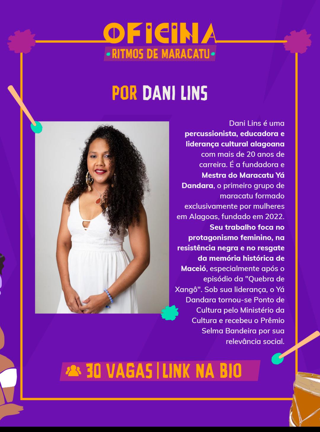 “Naquela época, percebemos um distanciamento das mulheres em relação aos instrumentos de percussão e decidimos mudar essa realidade por meio de vivências exclusivas, desse movimento, surgiu o Maracatu Yá Dandara, liderado por Dani Lins, que transformou o tambor em um território de afirmação política e artística, explicou.