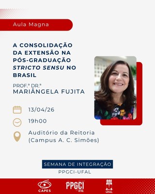 A abertura das atividades acontece na próxima segunda-feira (13), às 19h, no auditório da Reitoria. A professora Mariângela Spoti Lopes Fujita ministrará a aula magna do evento, com o tema A consolidação da extensão na pós-graduação stricto sensu no Brasil, promovendo uma análise sobre o fortalecimento da extensão universitária como eixo fundamental na formação acadêmica e na relação entre universidade e sociedade. Atualmente, docente é coordenadora adjunta da área de avaliação Comunicação, Informação e Museologia da Coordenação de Aperfeiçoamento de Pessoal de Nível Superior (Capes).