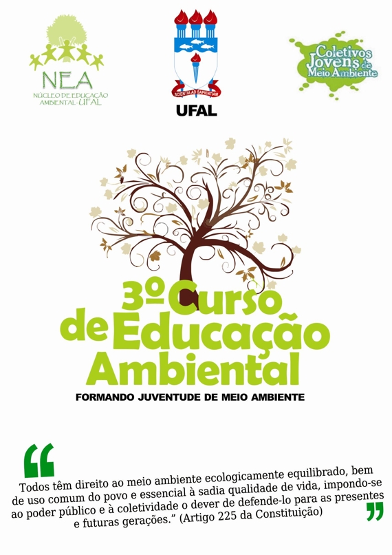 O curso é promovido pelo Núcleo de Educação ambiental da Ufal e pelos Coletivos Jovens e Meio Ambiente. Além do apoio das pró-reitorias e centros acadêmicos, como Cedu e Ceca, o curso teve participações importantes de docentes do IGDEMA, ICBS e do Arboretum de Alagoas. Também contribuíram representantes das secretarias de Recursos Hídricos e Meio Ambiente, da Saúde, do Instituto do Meio Ambiente, da Casal e do Grupo João Lira.