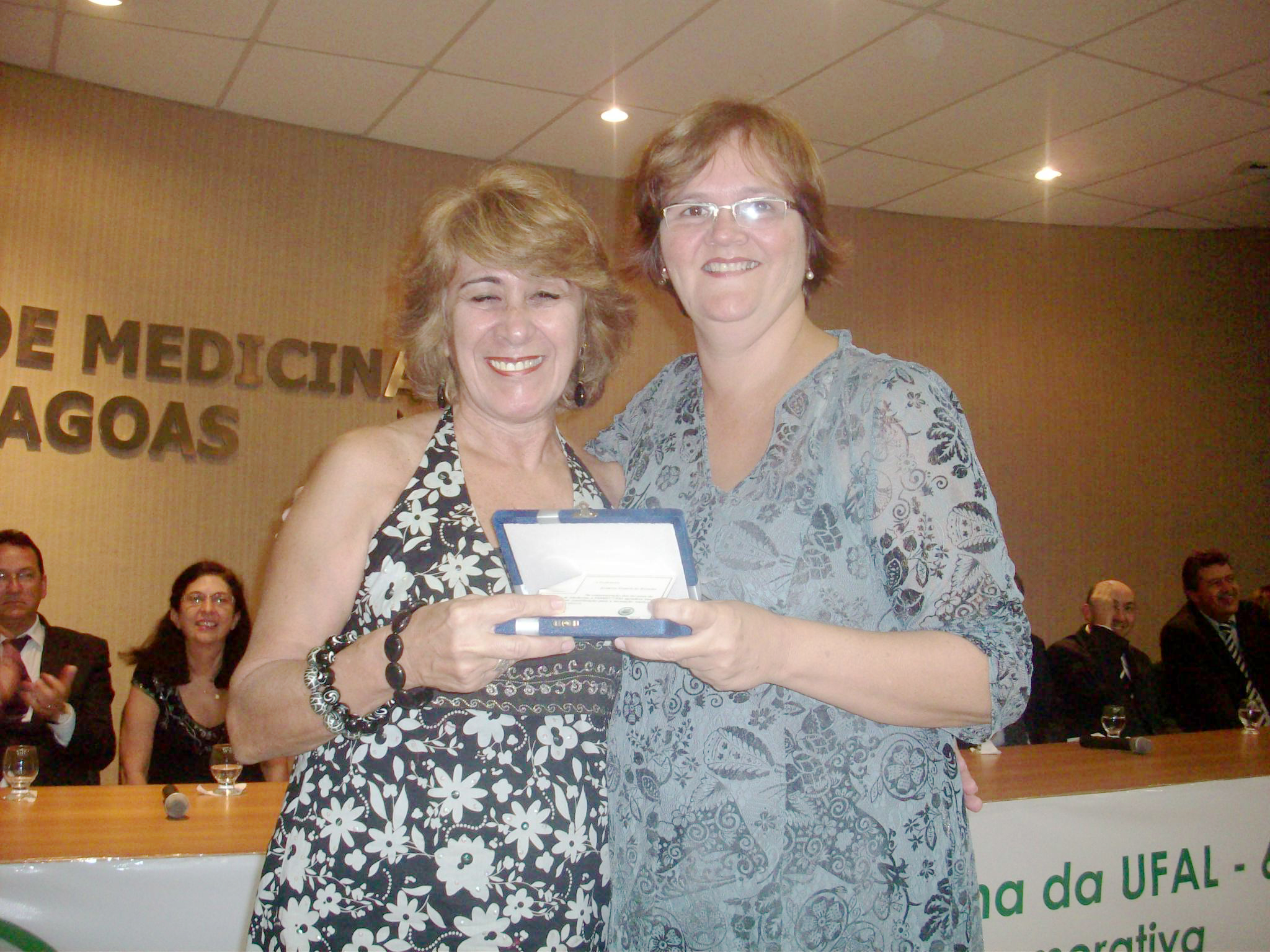 A reitora Ana Dayse Dorea, a ex-diretora, Rosana Vilela, e várias outra personalidades foram homenageadas com uma placa comemorativa aos 60 anos da Faculdade.