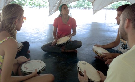Com o curso, a ex-aluna de Pedagogia Ângela Lopes voltou à universidade para adquirir o conhecimento que faz diferença em seu trabalho como contadora de histórias. "Um instrumento sempre é bom para acordar os alunos. Através dele podemos chamar a atenção dos pequenos para o universo da leitura", relatou Ângela, que teve seu primeiro contato com o pandeiro esta semana.