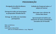 A programação do festival, ainda em construção, contará com a apresentação de filmes, tanto da mostra competitiva quanto da mostra paralela, e trabalhos acadêmicos, além de mesas-redondas, oficinas, sessões de cineclubismo e debates com estudiosos e profissionais da área.