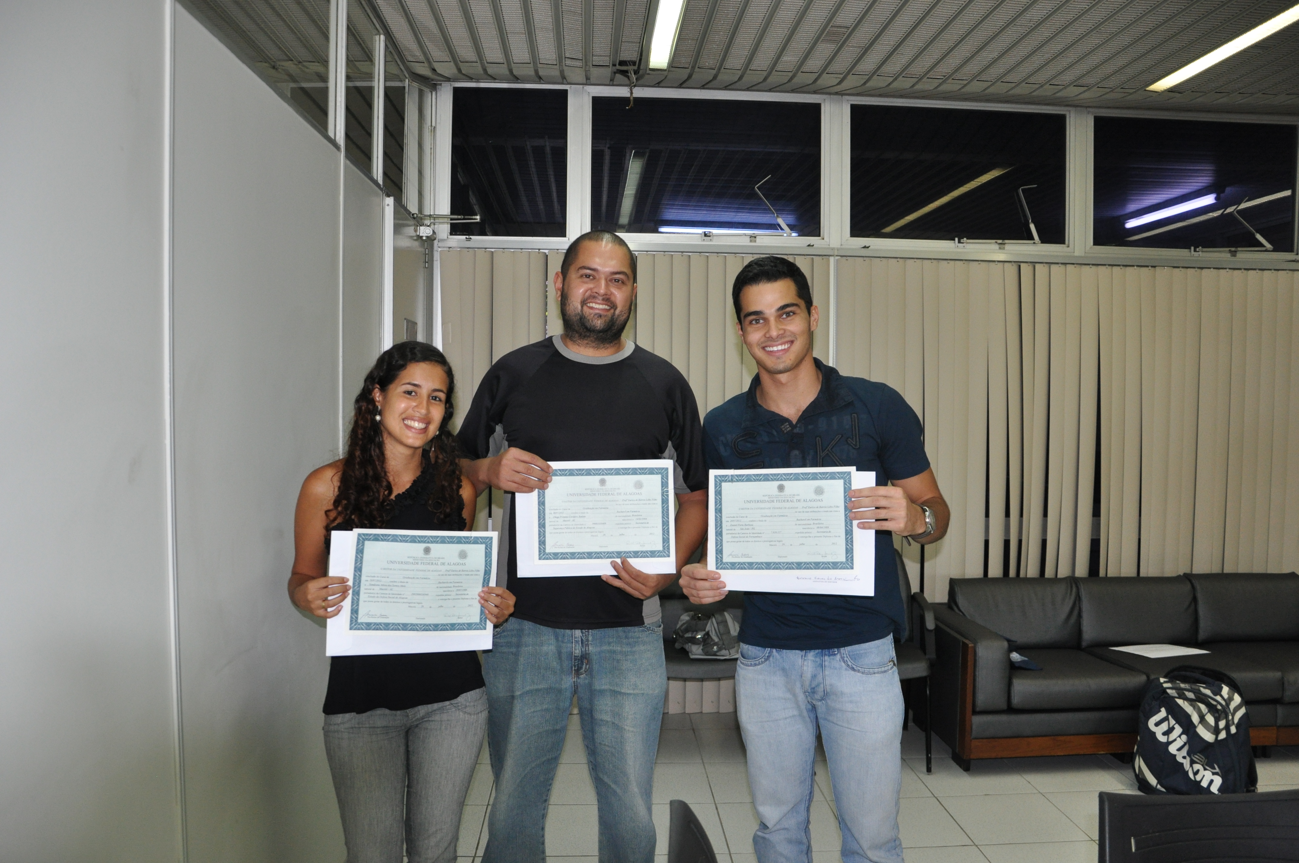 Na correria para não perder a oportunidade de um emprego conquistado por concurso, ou de uma vaga de mestrado, dez alunos colaram grau no gabinete da vice-reitoria nesta quinta-feira, 26. Entre eles, três saem dos cursos de Farmácia para dar início a primeira turma do Mestrado em Ciências Farmacêuticas da Escola de Enfermagem e Farmácia (Esenfar), da Universidade Federal de Alagoas.