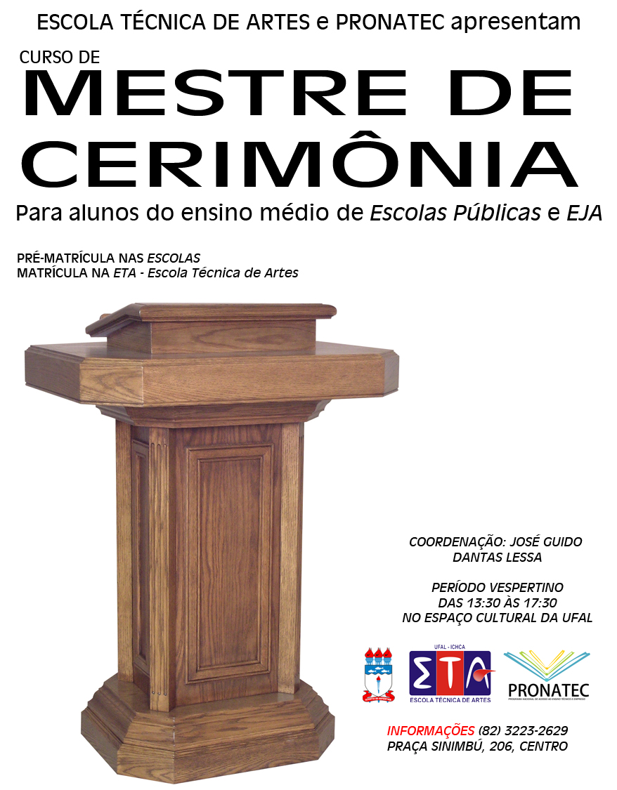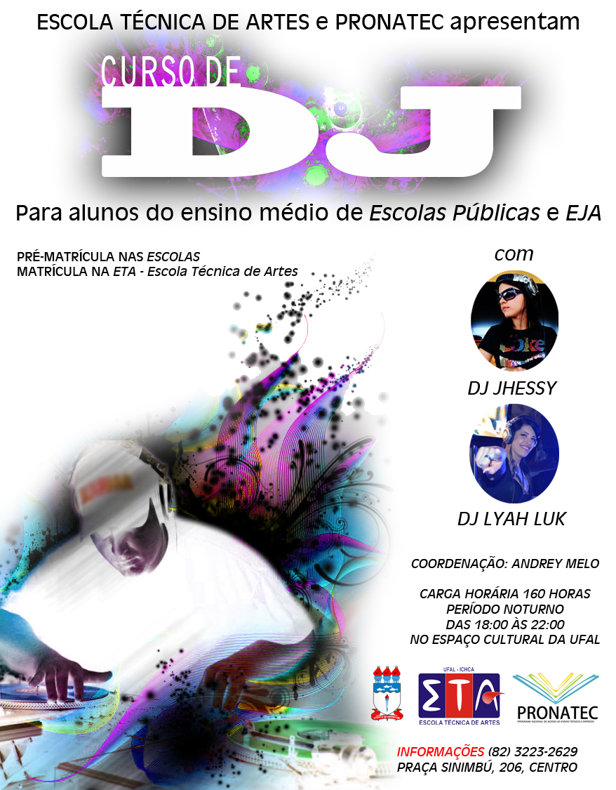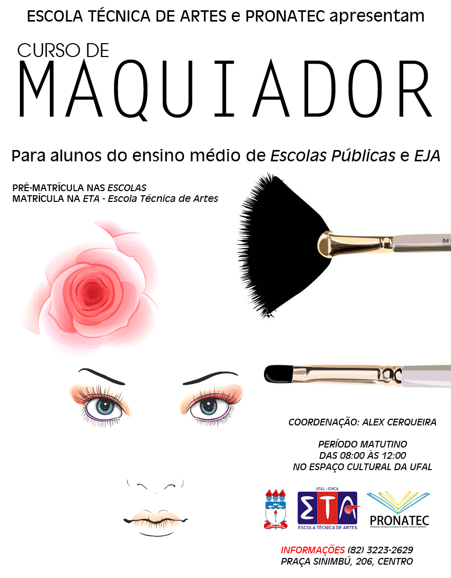 A Escola Técnica de Artes (ETA), da Universidade Federal de Alagoas, está com matrículas abertas para cursos de diversas áreas de atuação. Eles são voltados para alunos do Ensino Médio de escolas públicas e da Educação de Jovens e Adultos (EJA).