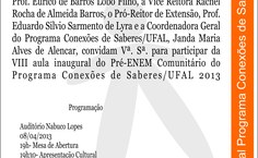 Na noite da próxima segunda-feira, 8, será dada a largada à temporada 2013 do programa Conexões de Saberes. A iniciativa, promovida pela Pró-reitoria de Extensão (Proex), convida os estudantes a participarem da aula inaugural do curso, que será realizada no auditório Nabuco Lopes, localizado na Reitoria, situada no Campus A. C. Simões, em Maceió, a partir das 19h.