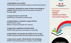 Pelas manhãs, os participantes terão várias palestras sobre literatura infantil, o direito à leitura, gêneros literários e espaços de leituras, por exemplo.Durante as tardes serão ofertados cursos de diversos temas, como Potencialidade da voz na leitura; Organização e dinamização de espaços de leitura como estratégia de mediação; O espaço do corpo no corpo de texto; Contando histórias e encantando os espaços de leitura; Imagem, texto e significação na literatura infantil e etc.