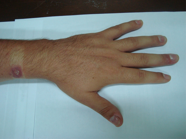 O dono do animal, que ainda está sob tratamento médico, apresentava uma lesão nodular com secreção purulenta no dedo da mão esquerda após arranhadura do animal também com lesões satélites no braço e antebraço. Foram feitas as culturas bacteriana e fúngica, constatando-se o diagnóstico de esporotricose na forma linfocutânea. O proprietário do animal, um homem de 30 anos de idade sem o histórico de atividades ligadas ao solo ou plantas, manifestou uma lesão nodular com secreção. O tratamento instituído é à base do antifúngico itraconazol 400 mg/dia.