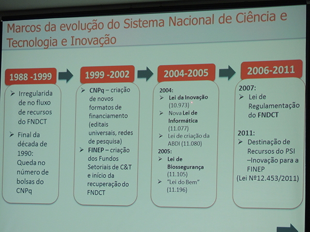 Outro ganho da Finep nos últimos anos foi a redução do tempo de resposta à demanda das instituições de pesquisa, que caiu de uma média de 367 para 34 dias. “Não adianta a gente demorar anos para investir em um projeto, pois com o passar do tempo as empresas repensam e desistem deles e as universidades acabam utilizando os recursos para outras coisas”, disse Rodrigo.