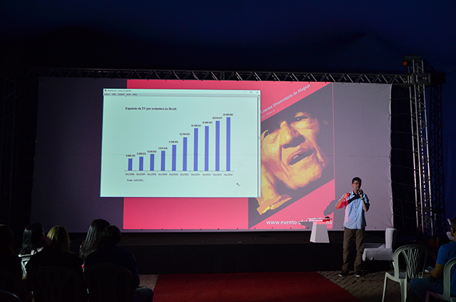 A solenidade de abertura também contou com a conferência A expansão do mercado audiovisual brasileiro: Fundo Setorial Audiovisual (FSA), ministrada pelo professor do Instituto de Ciências Sociais da Ufal, Helder Maia. De forma breve, ele mostrou a evolução de público e de recursos destinados à produção cinematográfica no Brasil. De acordo com o docente, por meio do FSA, fundo do Banco Nacional de Desenvolvimento (BNDES), há cada vez mais recursos para a criação de conteúdo tanto para o cinema, quanto para os canais de TV por assinatura. “Dinheiro não falta, hoje existe no FSA mais de 2 bilhões de reais em recursos esperando a aprovação de novos projetos”, destacou Elder Maia.