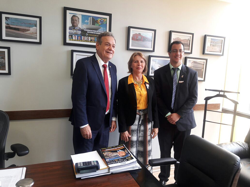 Os pró-reitores de Gestão Institucional, Flávio Domingos, e de Graduação, Sandra Regina Paz, acompanharam a reitora Valéria Correia nas visitas aos gabinetes de todos os parlamentares alagoanos, esta semana, em Brasília. O objetivo é apresentar a campanha: Parlamentar, abrace a Ufal!, que pede a colaboração deles para criar emendas que contemplem os projetos da Universidade.