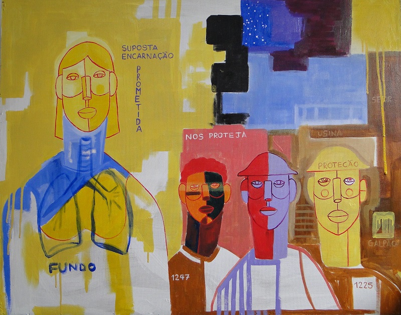 O meio urbano se faz presente também nos suportes das pinturas que serão expostas. Para produzir suas obras, o artista usa telas e eucatex, mas também reutiliza materiais encontrados em casas abandonadas e pelas ruas de João Pessoa.