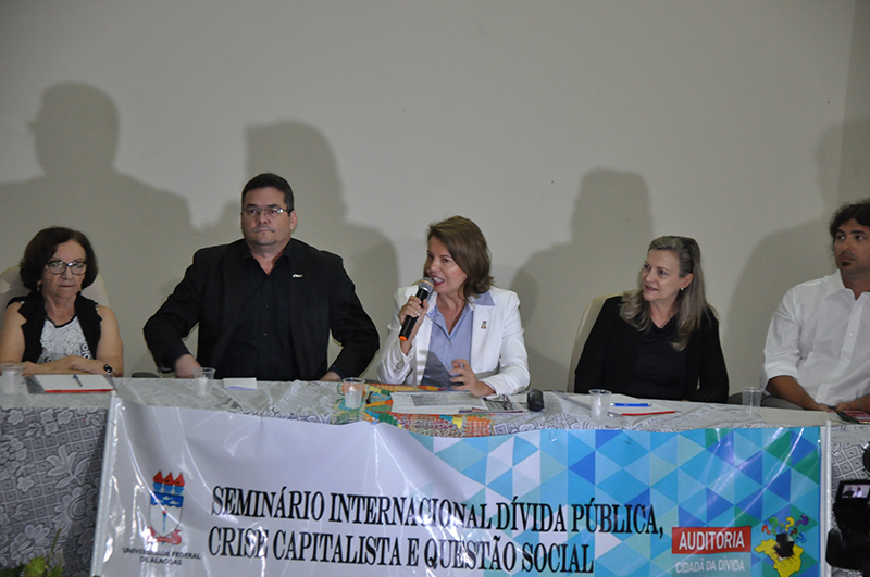 A reitora Valéria Correia expressou o orgulho de ter a Ufal sediando e participando desse evento internacional. “A Universidade cumpre o papel de elucidar o que tem por trás desse mito da dívida pública. Esse seminário marca uma trajetória da nossa gestão. Queremos lembrar que estamos de um lado, do lado do povo brasileiro, da defesa dos serviços públicos e das universidades federais brasileiras contra os cortes de gastos”, afirmou.