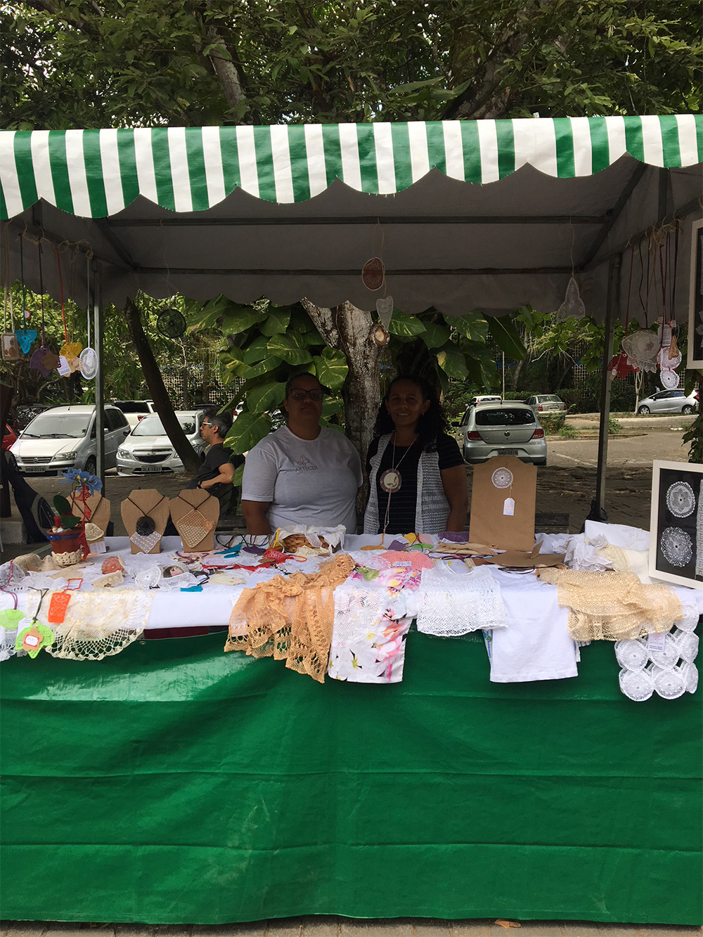 A mudança de local foi aprovada pelos agricultores e pela comunidade e culminou com a comemoração do Dia Mundial da Alimentação, 17 de Outubro. Paralela à feira, uma programação específica marcou a passagem da importante data e proporcionou atividades como roda de conversa, exposição e oficina de bico singeleza, leitura e literatura de cordel pelas mulheres camponesas, momentos de reflexão e degustação. As atividades foram conduzidas por professoras do Laboratório de Nutrição em Saúde Pública (Fanut), equipe do projeto Colhendo Bons Frutos e Associação das Produtoras Agroecológicas da Zona da Mata Alagoana (Aproagro).