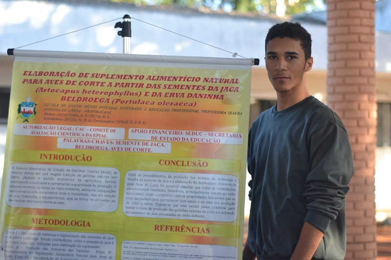 Gabriel Soares é aluno do ensino médio e participou da exposição com seu trabalho desenvolvido no laboratório da escola. O adolescente criou junto de sua professora um suplemento alimentar para ser consumido por galinhas caipiras, feito à base do caroço de jaca e das folhas da beldroega. Apesar de não querer seguir o caminho da química, o garoto diz que a pesquisa foi fundamental para aprender como usar os métodos científicos.