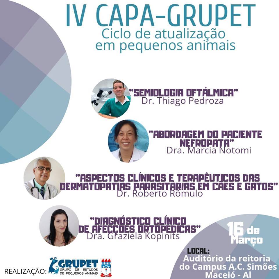 Estudantes e profissionais da área de Medicina Veterinária de Alagoas têm a oportunidade de participar do 4º Ciclo de Atualização em Pequenos Animais (Capa), que reunirá especialistas das áreas de oftalmologia, nefrologia, dermatologia e ortopedia.