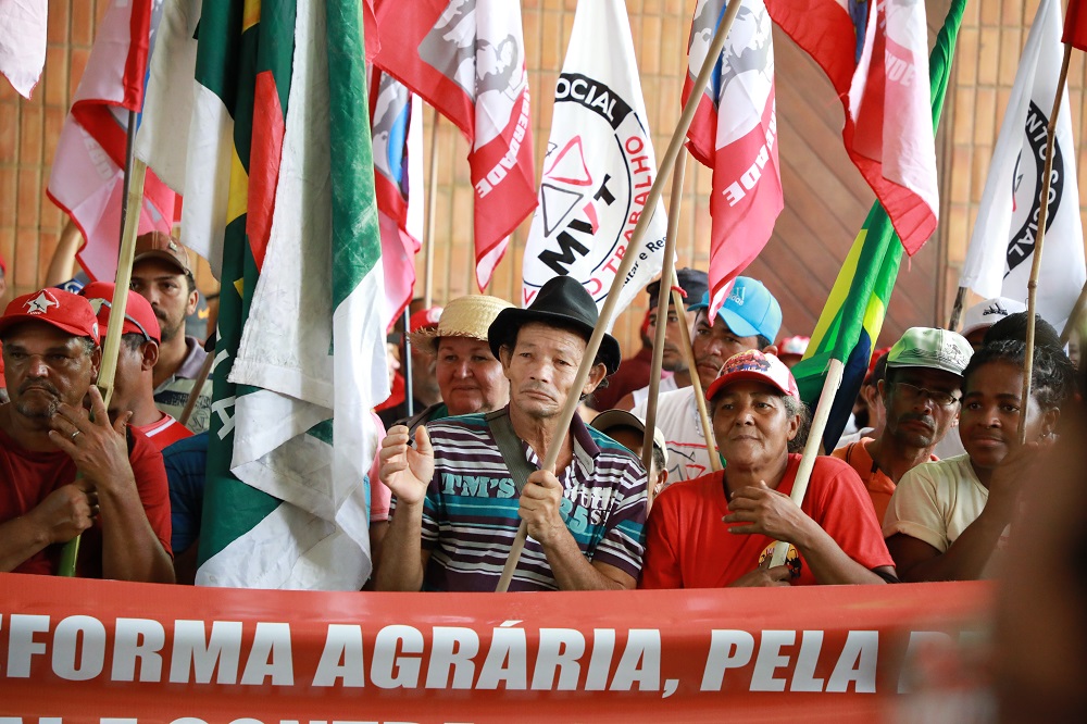 Centenas de trabalhadores rurais estiveram concentrados no hall da Reitoria, com faixas e bandeiras do Brasil e dos movimentos. Foram entoados cantos e feitos discursos em defesa da Reforma Agrária e contra a criminalização dos movimentos. “Estamos aqui para pedir o apoio da sociedade para as políticas públicas que fortaleçam a justiça no campo e a produção familiar, livre de agrotóxicos, o que garante a alimentação saudável para toda a população”, disse Val, dirigente estadual do MLST.