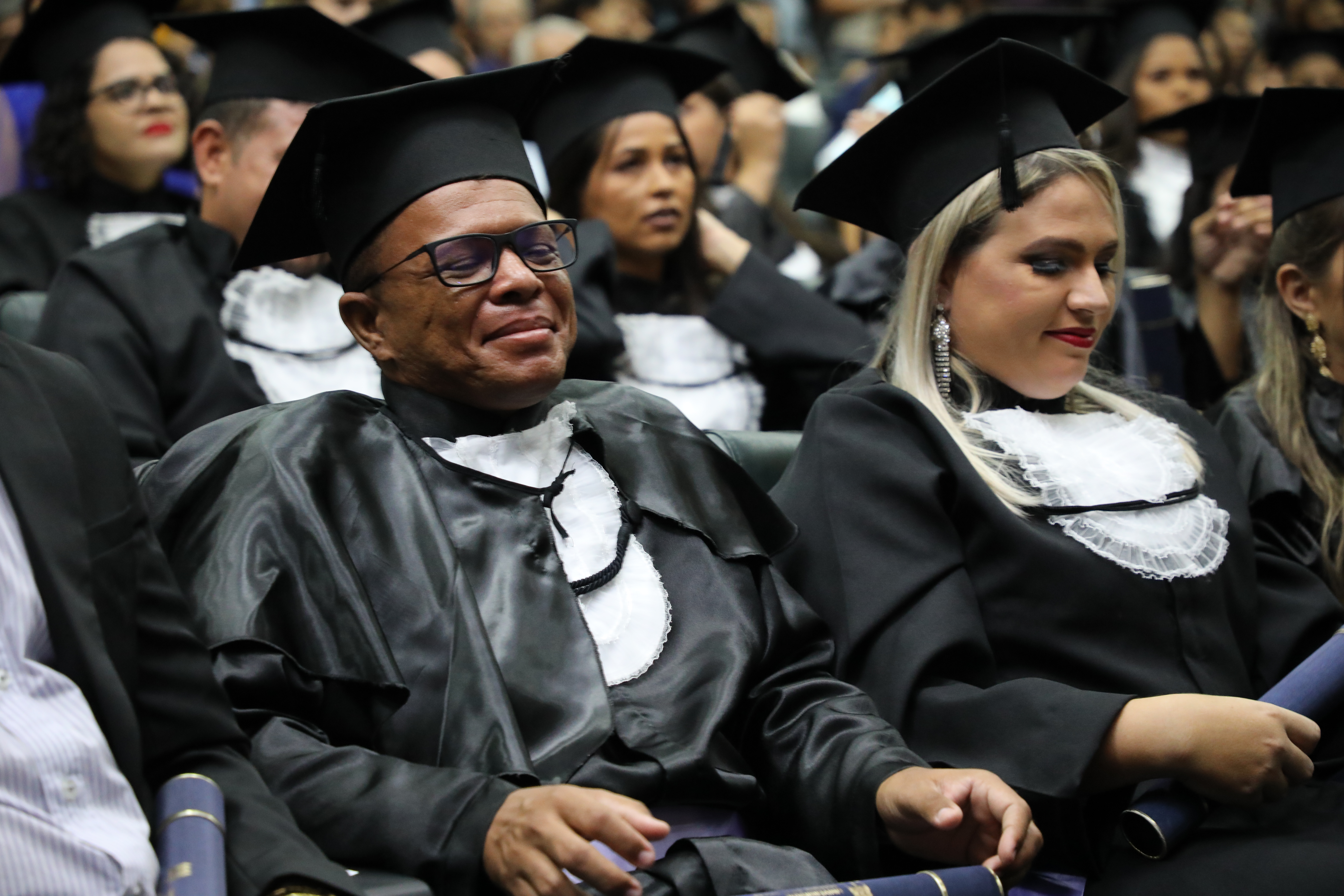 As solenidades de Colação Social são marcadas por momentos emocionantes e que representam muita superação. Sara Oliveira e Silva, 33 anos, se formou em História licenciatura. Ela lembrou do período que teve que interromper a graduação, já perto de concluir o curso, faltando apenas entregar o TCC, por causa de uma gravidez de risco. “Comecei por gostar mesmo [do curso]. Tive que parar. Corri contra o tempo pra poder fazer o TCC. Hoje estou colando grau, graças a Deus”, disse ela.