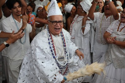 Os atabaques e as vozes cantaram alto, e as várias cores do público se misturaram ao branco do povo de axé que, junto com o Afoxé Odô Ya, cantaram para Exú, senhor da comunicação e da abertura de caminhos, em um grande cortejo para abrir de fato a 11ª Bienal Internacional do Livro de Alagoas.