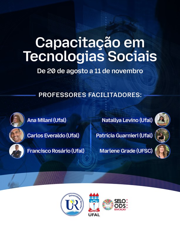 Coordenado pela professora Ana Milani, o projeto promove o curso Educação Transformadora: Formação em Tecnologias Sociais, que acontece de 20 de agosto a 11 de novembro. Essa atividade on-line é voltada a docentes, pesquisadores e profissionais interessados em compreender e aplicar metodologias que promovam desenvolvimento sustentável, economia solidária, cooperativismo e inovação social.