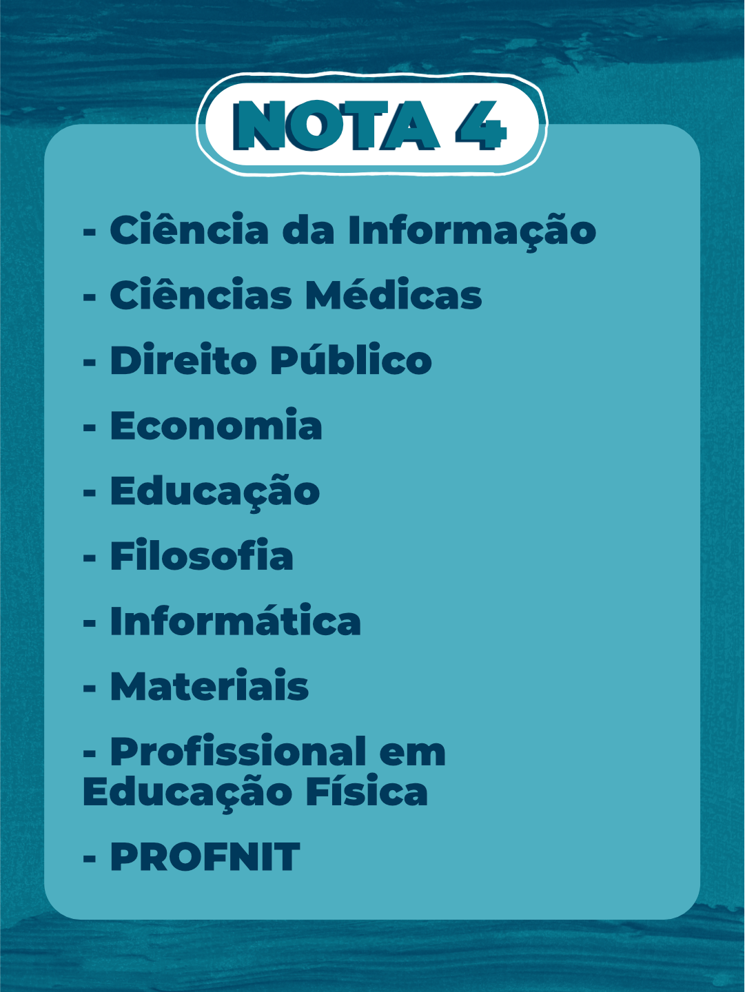 Os resultados são expressos em notas, numa escala de 1 a 7, sendo: nota 3, desempenho mínimo (apenas mestrado ou mestrado-doutorado iniciantes); notas 4 e 5, bom desempenho e consolidação; e notas 6 e 7, programas de excelência internacional.