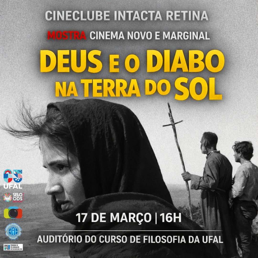 Os filmes Vidas Secas, Deus e o Diabo na Terra do Sol, O Bandido da Luz Vermelha e Bye Bye Brasil serão exibidos gratuitamente a partir da próxima terça-feira, 10 de março, no auditório do curso de Filosofia da Universidade Federal de Alagoas (Ufal).A atividade faz parte das ações do projeto Cineclube Intacta Retina, que acontece sempre às terças a partir das 16h, a Mostra de Cinema Novo e Marginal.