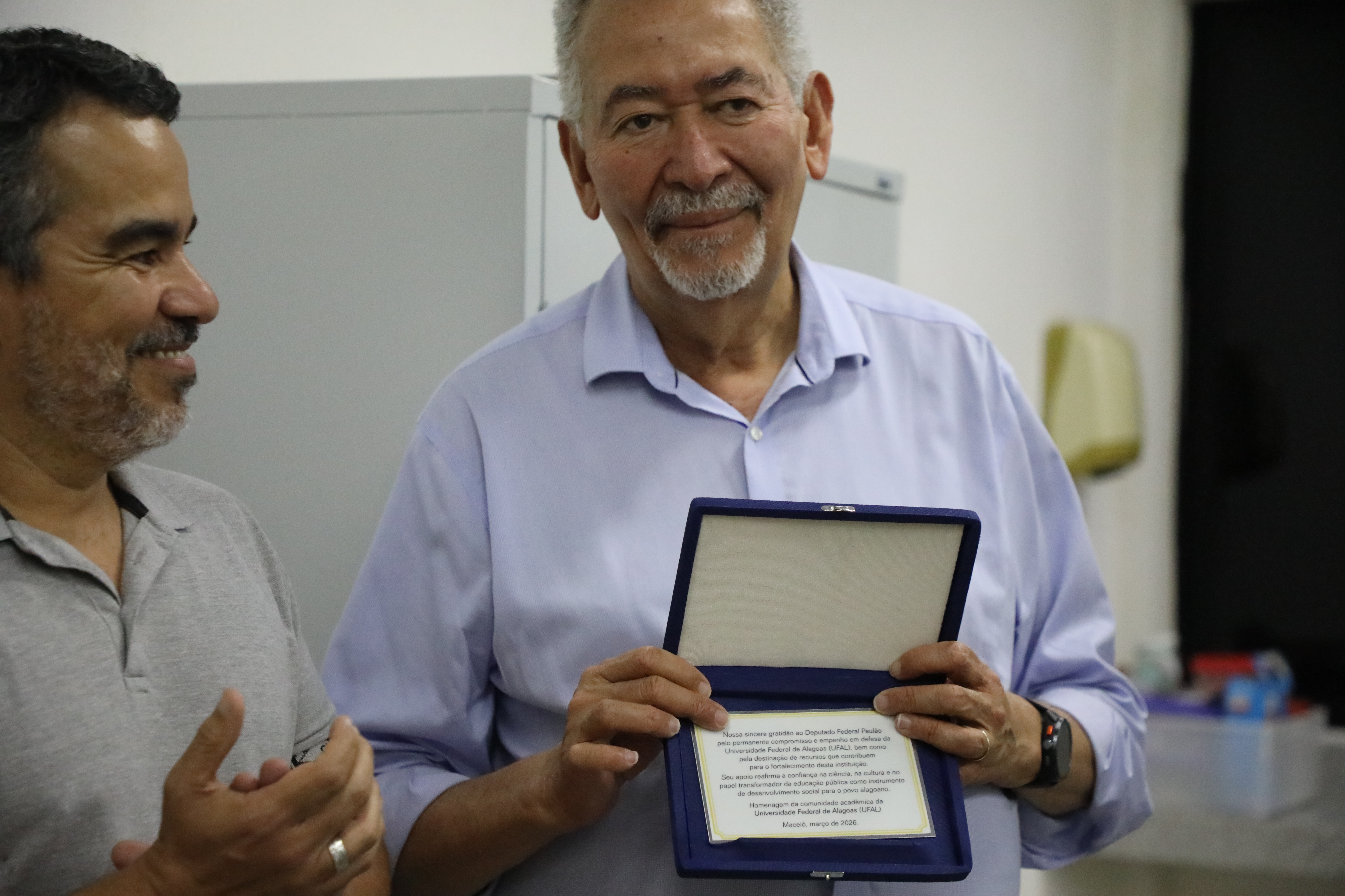 A solenidade foi encerrada com a entrega de uma placa, em homenagem ao deputado Paulão pela parceria com a Ufal e compromisso com a comunidade acadêmica. “Conseguimos construir esse espaço de diálogo que vem fortalecendo a nossa Instituição, mesmo em meio de cenários de corte e crises financeiras”, finalizou o reitor.